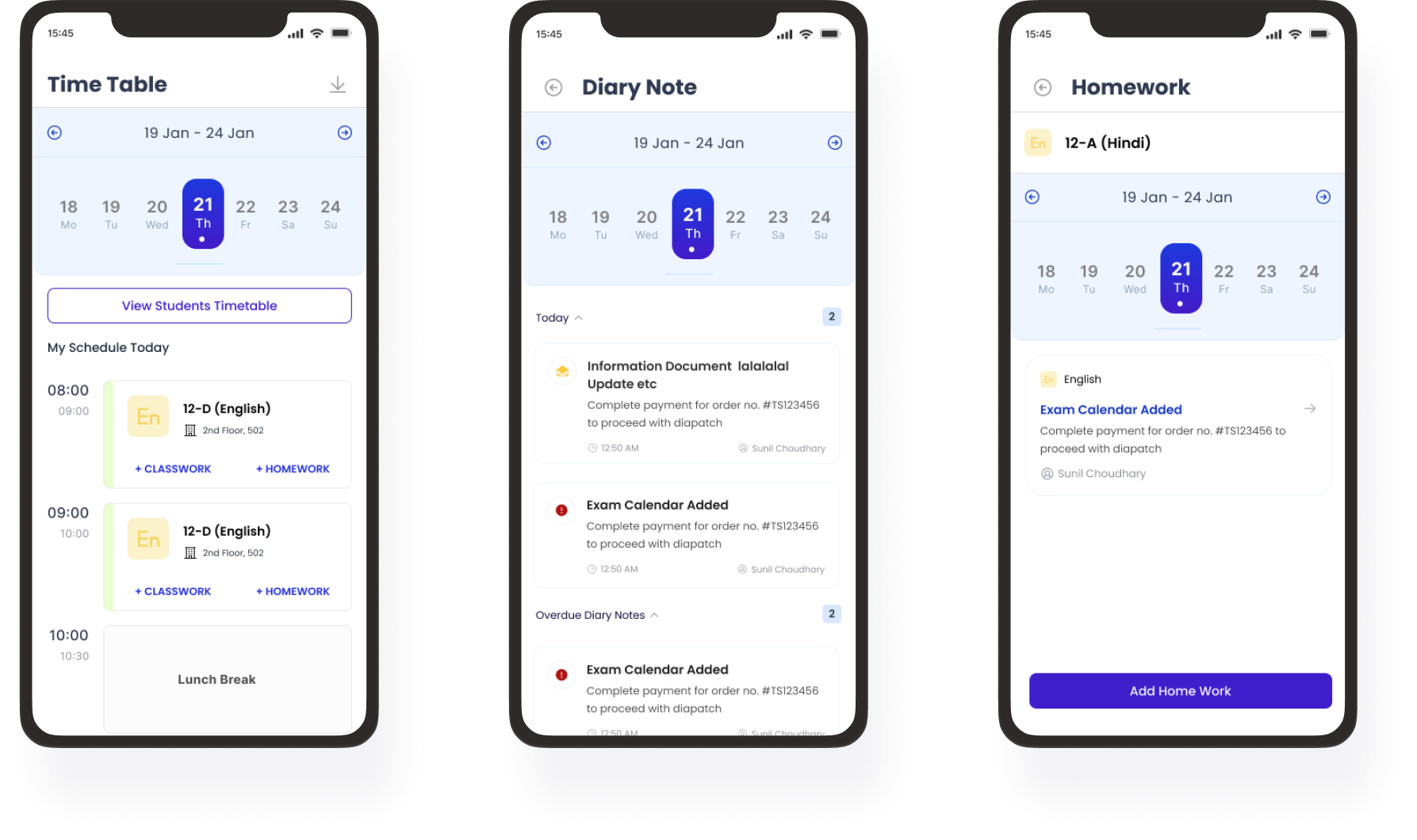 The same data served different intents without confusion: teachers executed parents monitored students tracked management oversaw